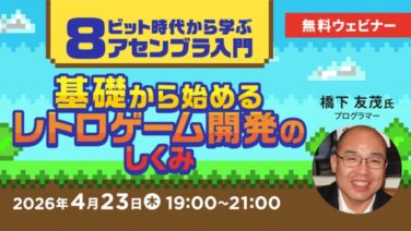 株式会社クリーク・アンド・リバー社(C&R社)は4月23日(木)、レトロゲーム開発に興味がある方を対象とした無料のオンラインセミナー「8ビット時代から学ぶアセンブラ入門 基礎から始めるレトロゲーム開発のしくみ」を開催します。高品...