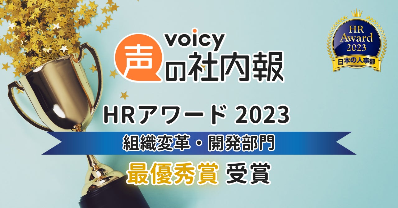 合計352点のエントリーから組織変革・開発部門には5つが入賞。その後、全国29万人のHRパーソンによる投票、選考委員会による最終選考を経て、2023年のHRを代表する取り組みとして「Voicy 声の社内報」が選ばれました。