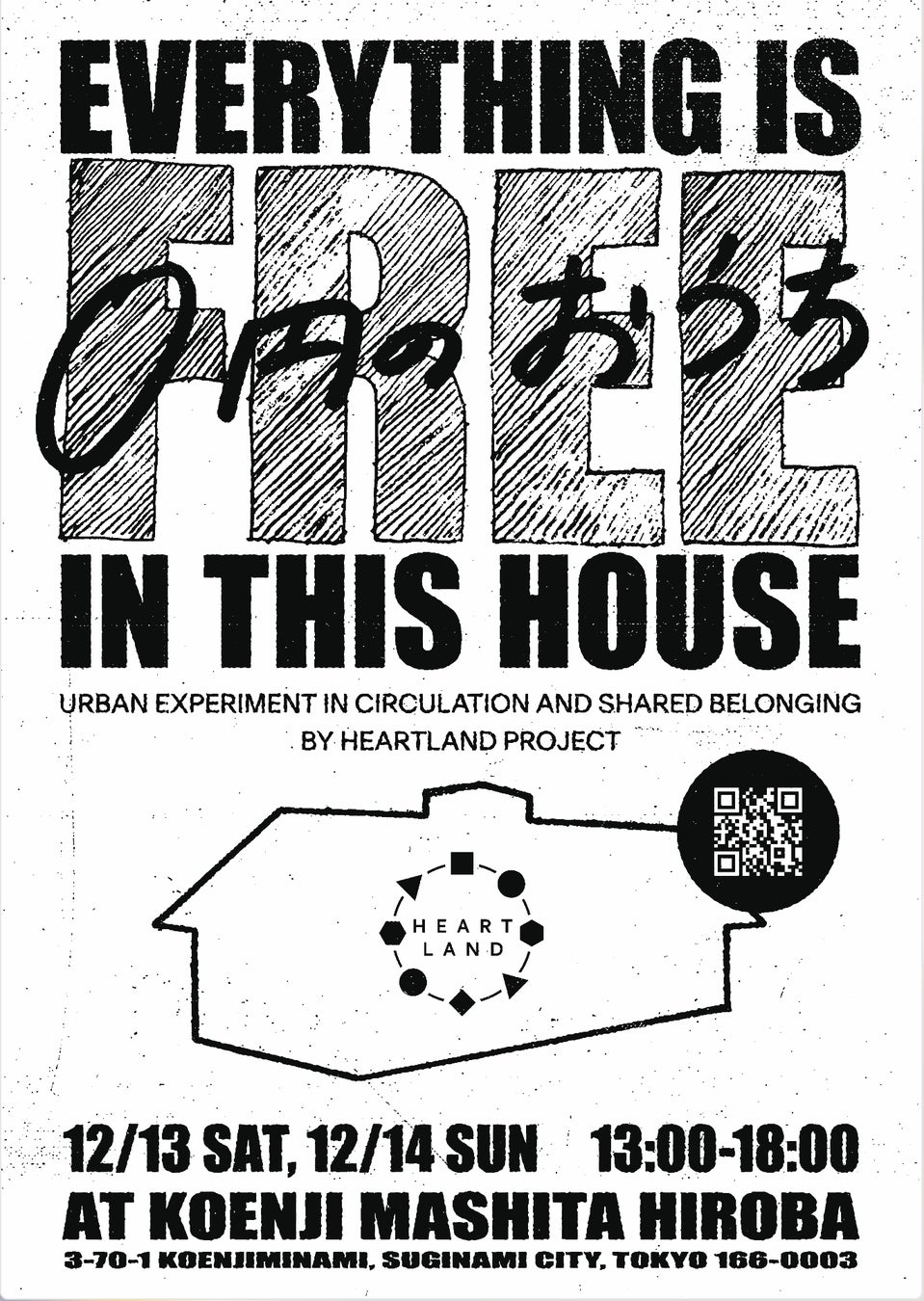 「0円のおうち City-Home Circulation」は、「贈与経済2.0」を実際の場で検証するための実証イベントです。贈与と感謝が循環する社会を、高円寺高架下「高円寺マシタ」にて体験できるように設計します。