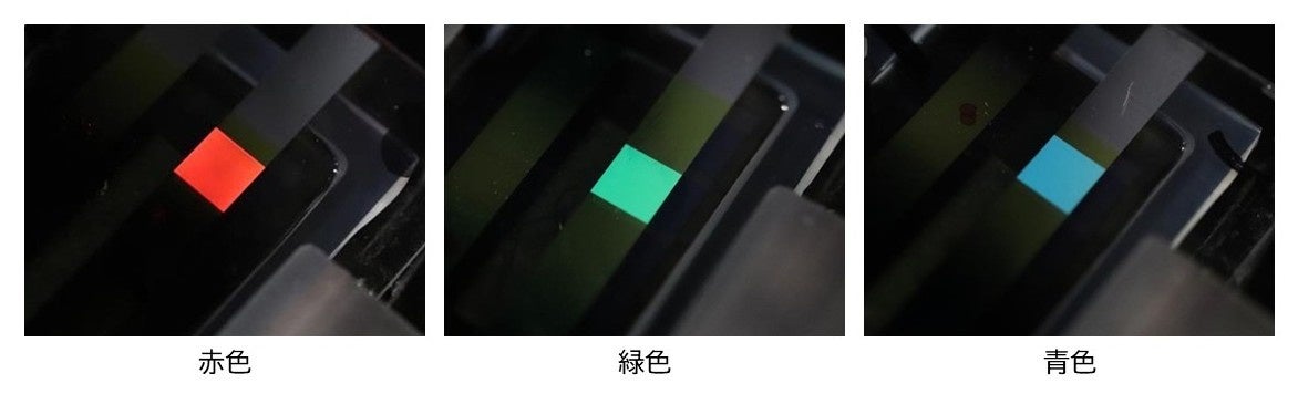 本デバイスで赤、緑、青の3色の発光を実現しました。また、本デバイスは青色から赤色、白色に至る全可視光領域での発電が可能です。