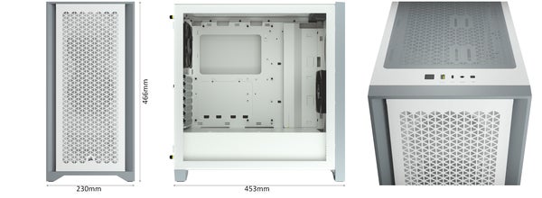 高性能PCを支えるケースは、PCコンポーネントでも人気のCorsair製『4000D Airflow』を採用。フロントに通気性の高いメッシュパネル、サイドパネルに強化ガラスを採用したミドルタワーケースです。システム部と電源ユニットを独立したチャンバーで分けることで互いの排熱による影響を与えない効率的なエアフローを確保しています。