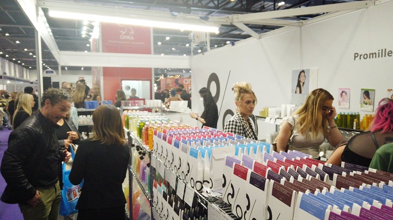 ブースでは、主力ブランドである【Promille】の人気商品「プロミルオイル」をはじめとして同ブランドのシャンプー、トリートメント、ヘアカラーなどを展示いたしました。