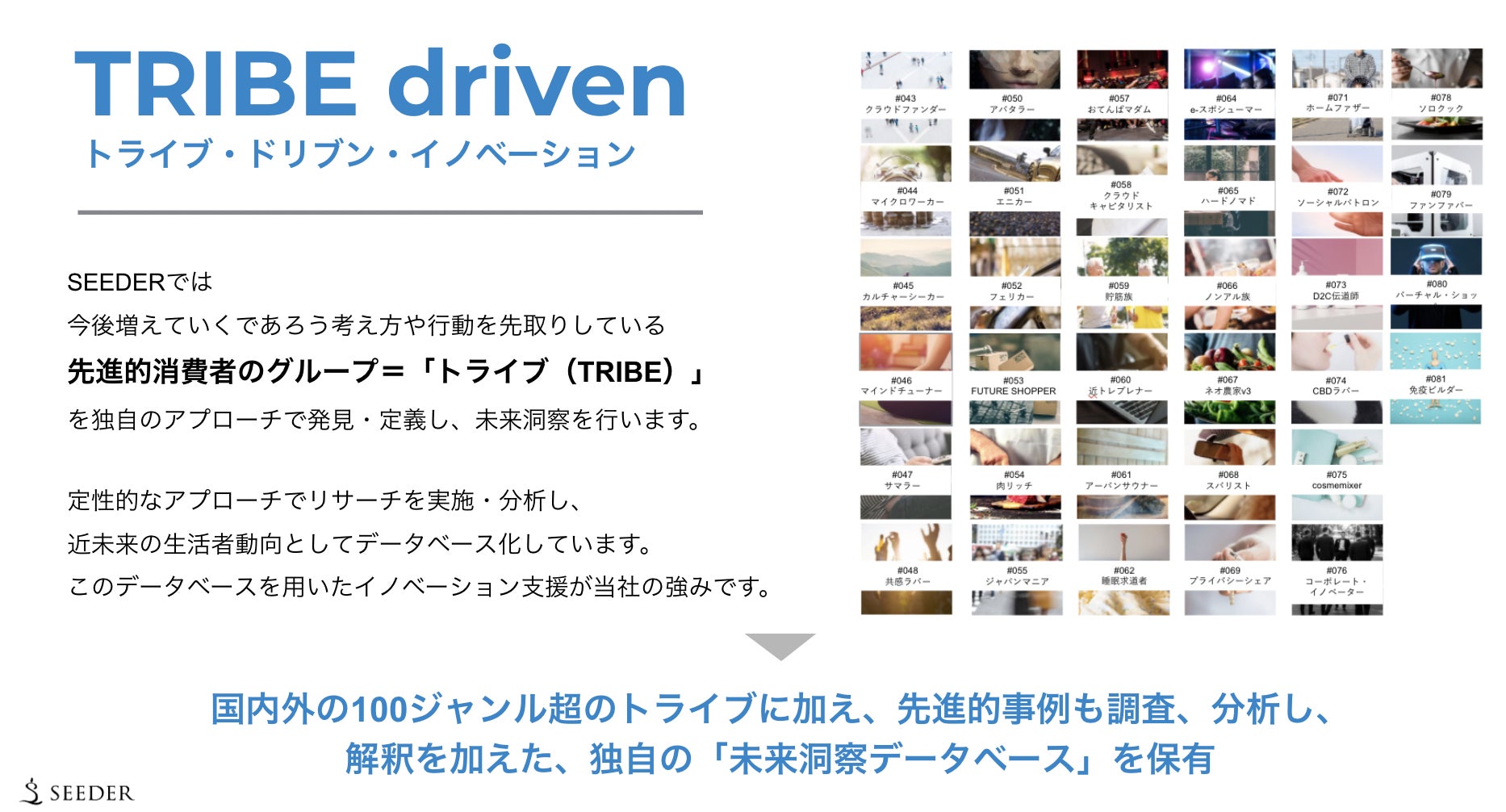 SEEDERは、近い未来に起こり得る先進的な価値観や行動様式を持つ生活者を独自のアプローチで発見・定義し未来洞察を行います。