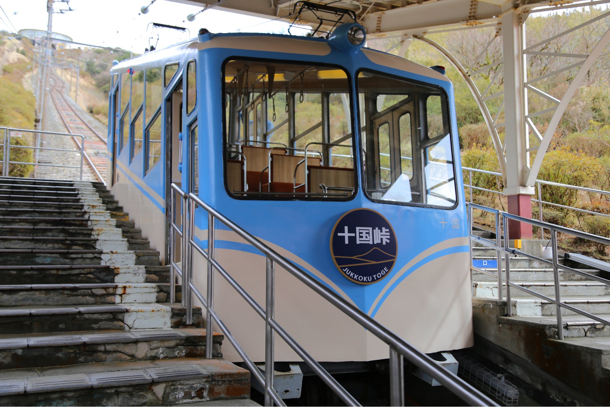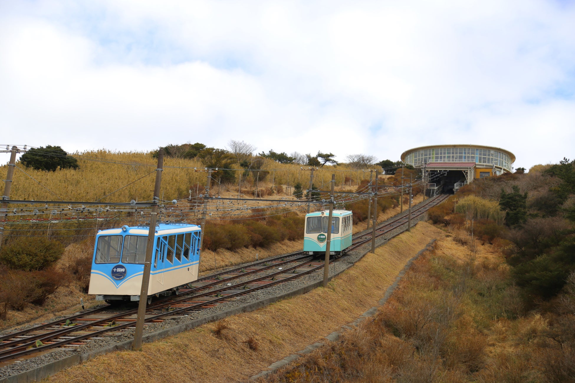 十国峠パノラマケーブルカーは、箱根と熱海の中間に位置し、十国峠ドライブウェー(静岡県道20号線)途中の「十国峠山麓駅(「森の駅 箱根十国峠」内)」と、絶景展望デッキ「PANORAMA TERRACE 1059」のある「十国峠 山頂駅」を結ぶ全長316m(高低差101m)のケーブルカーです。十国峠の名前は、昔の国名で「伊豆」「駿河」「遠江」「甲斐」「信濃」「相模」「武蔵」「上総」「下総」「安房」の十の国が見渡せたことに由来し、その名の通り、晴れの日の山頂からは富士山や南アルプス、駿河湾はもとより房総半島や三浦半島まで、何も遮るものがない360°パノラマをお楽しみいただけます。