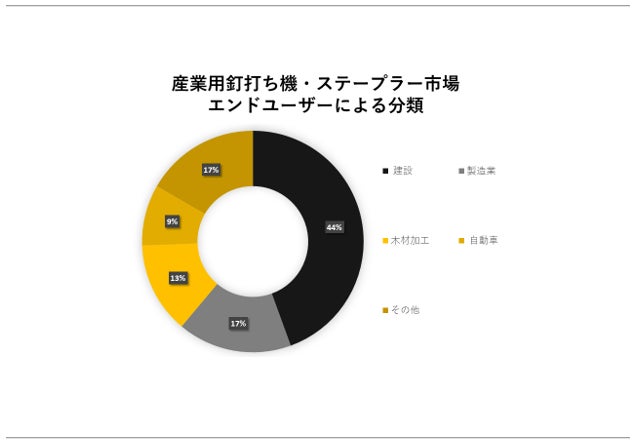 - 様々な産業で自動化された工具の大規模な導入が、産業用釘打ち機およびステープラー市場を後押しします。