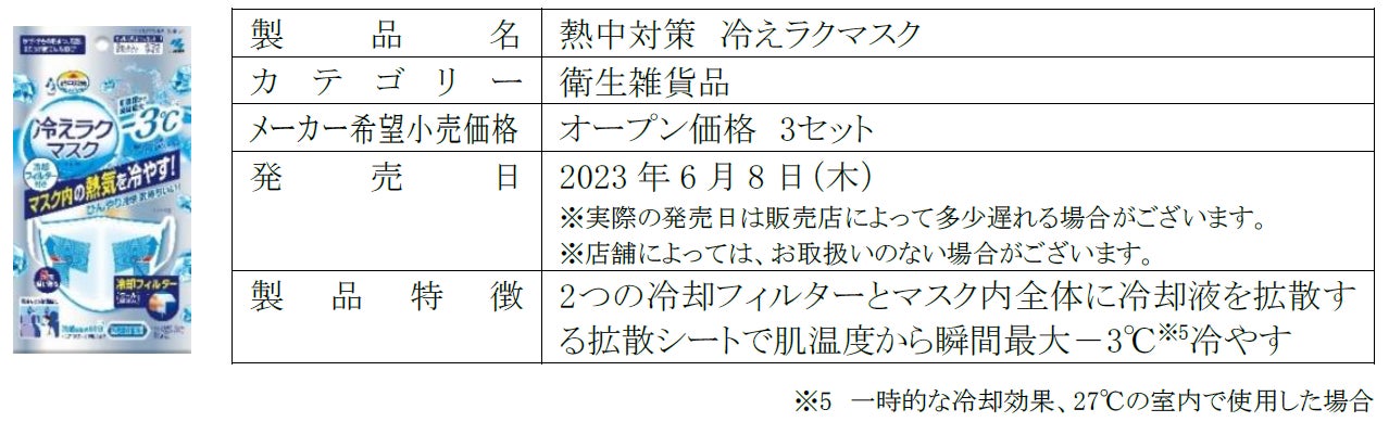 また、規制緩和の中でも夏のマスク着用が必要なシーンに使用いただける、弊社のフィルター付マスクの技術を応用した「冷えラクマスク」を発売することで、厳しい暑さへの“あったらいいな”にもお応えいたします。