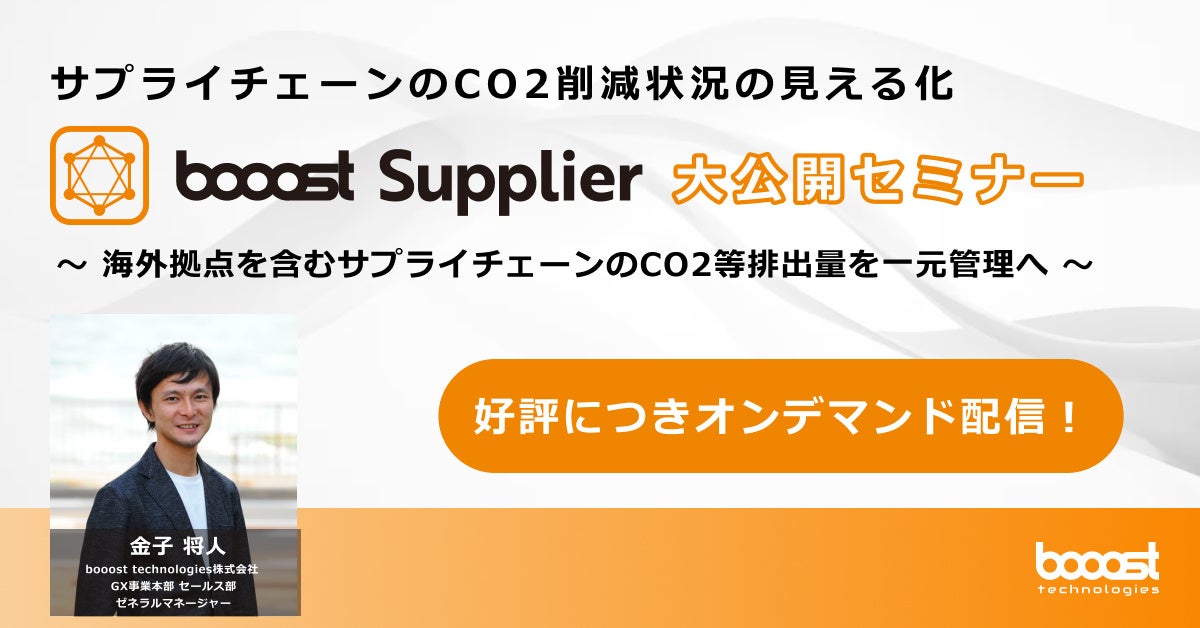 また、サプライチェーンにおけるCO2排出削減に関する取り組み動向、取り組みの実状や直面している課題などを解説と「booost Supplier」の機能を紹介する「『booost Supplier』大公開セミナー」のオンデマンドセミナーもスタートしました。