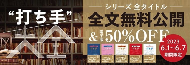 インプレスグループでIT関連メディア事業を展開する株式会社インプレス(本社:東京都千代田区、代表取締役社長:小川 亨)は、「“打ち手”大全」シリーズ特設ページの公開と『ネット広告運用“打ち手”大全』の重版出来を記念して、2023年6月1日(木)~6月7日(水)の1週間限定で、同シリーズの書籍5タイトルの全文を無料公開するキャンペーンを実施します。また、直販サイト「インプレスブックス」にて、電子書籍版を50%OFFで販売します。