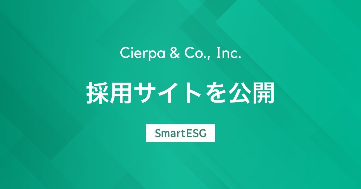 シェルパは、2023年6月に行われたエクステンションラウンドを完了し、現在組織拡大に向けた採用を強化しています。この度シェルパの事業やカルチャーをより多くの方に知って頂くことを目的として、採用サイト(Cierpa Job Board)を公開しました。今後シェルパは、多様なスキルや経験、様々な視点をもった人材を採用し、企業のESG経営の推進を加速させるとともに、持続可能な社会の構築に向けた取り組みを強化してまいります。