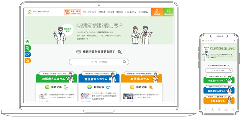 コンパスメディカルグループが運営する医科歯科健診コラム(https://www.compass-dc.jp/contents/)は、当グループの医師監修による一般ユーザー向け医科・歯科・健診コラム、医師・医療従事者向け仕事・業務紹介コラムなど、医科・歯科・健診に関わる医療情報サイトです。