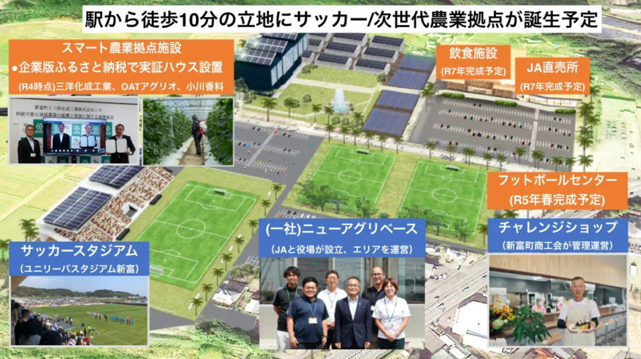 「宮崎県新富町は、人口1万6500人の食と農の町。野菜や畜産の生産だけでなく、農業ロボットのベンチャー企業の誕生や先進的な農業実証拠点の整備でも話題を集めています。一方、宮崎県初のJリーグ参入を果たしたサッカークラブ「テゲバジャーロ宮崎」のホームスタジアムがあり、今年3月には県フットボールセンターが完成し、今後サッカーでの交流人口増加も見込まれています。