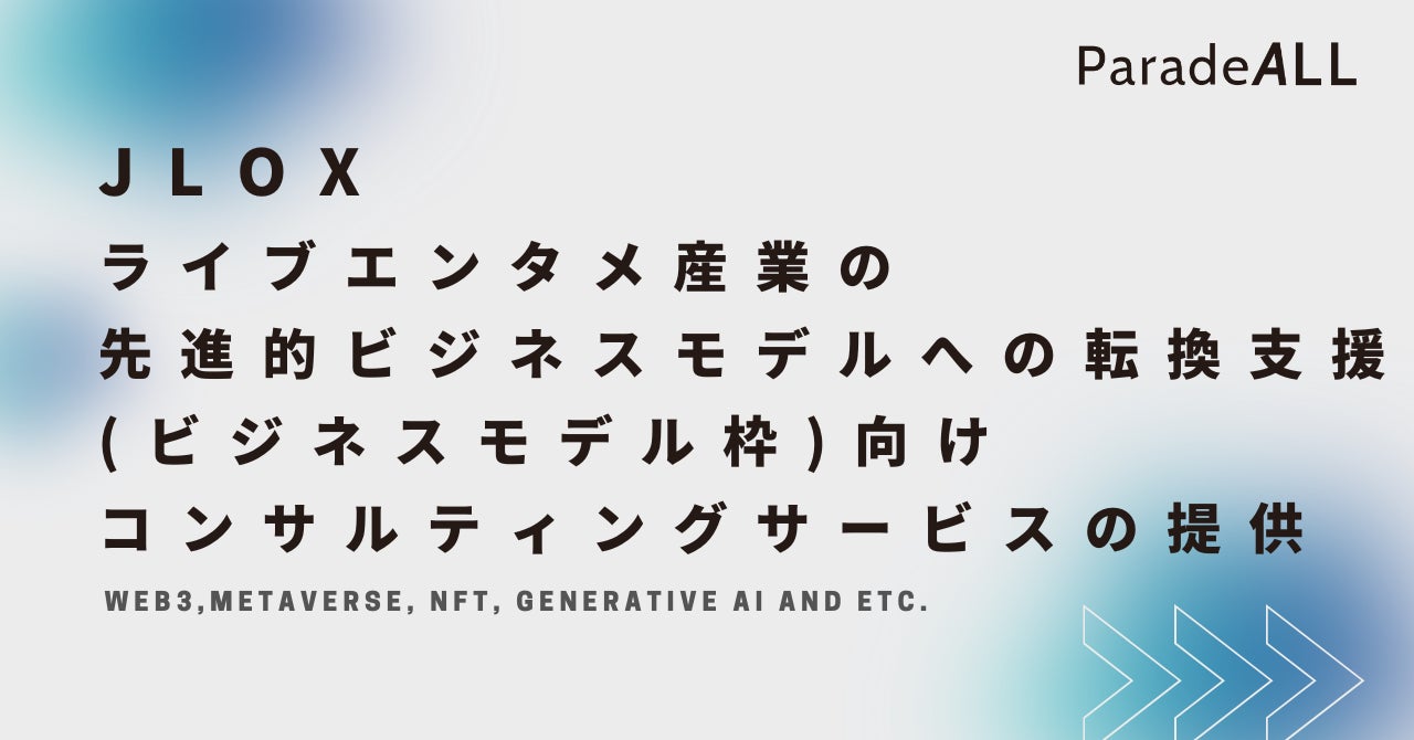 エンタテインメント x テクノロジー領域に特化したコンサルティングを提供する、ParadeAll株式会社(東京都中野区)は、経済産業省の令和4年度「コンテンツ海外展開促進・基盤強化事業費補助金(映像制作等支援)「JLOX」にて先日発表された「先進的ビジネスモデルへの転換支援事業」の「ライブエンタメ産業の先進的ビジネスモデルへの転換支援(ビジネスモデル枠)」に合わせて、これをエンタメ企業向けのコンサルティングサービスを提供する事を発表します。