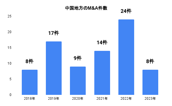 中国エリアにおける2022年のM&A件数は2018年の3倍に、県別では広島県がトップ