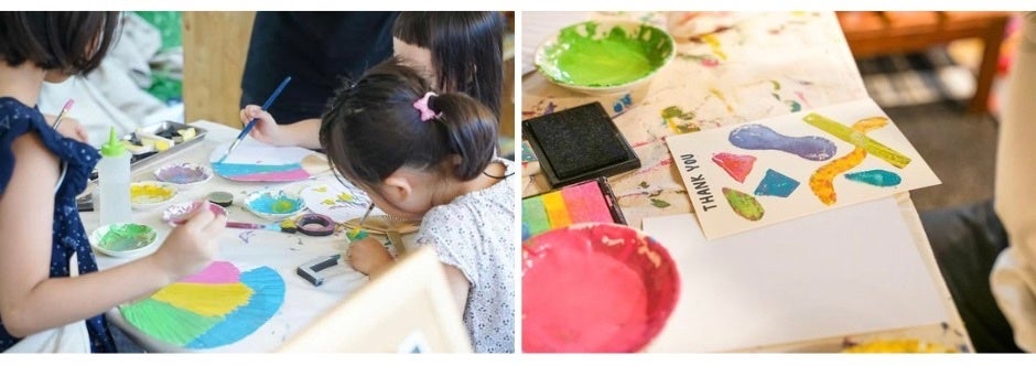 様々な形の幾何学スタンプを使って、オリジナルのうちわやポストカード、ポチ袋を作るワークショップを予定しています。自由に色と形を組み合わせて、自分だけのデザインを一緒に楽しみましょう〜!
