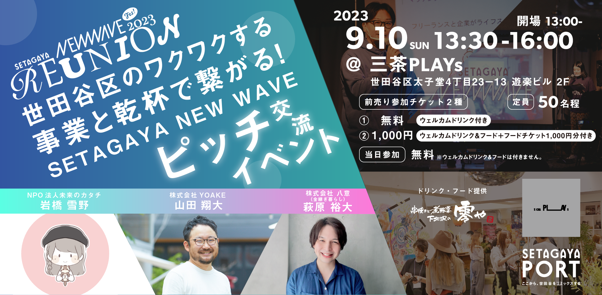 三軒茶屋ふれあい広場周辺にて開催する「SETAGAYA NEW WAVE」のイベントafter交流会。