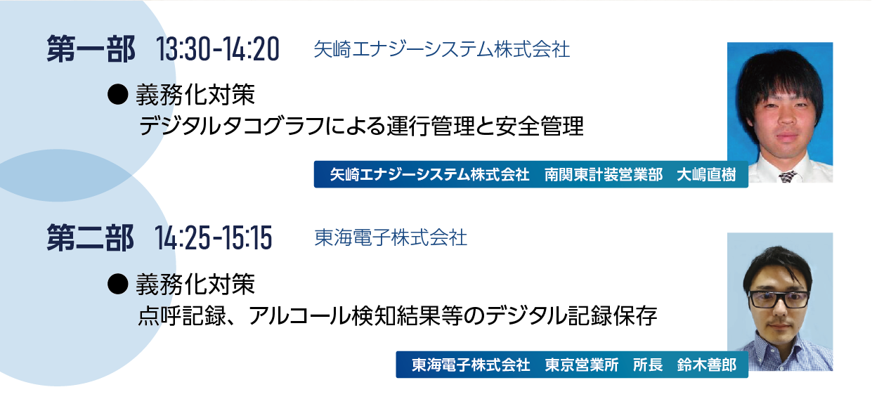 東海電子からは、点呼記録、アルコール検知結果等のデジタル記録保存についてをご説明いたします。