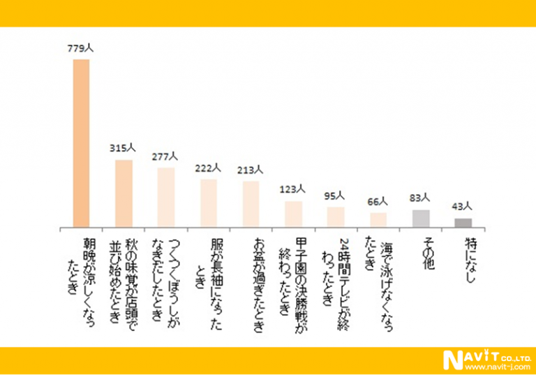 質問:夏の終わりを感じるのはどんな時ですか?(対象者:1000人) ※複数回答可(回答数:2216)