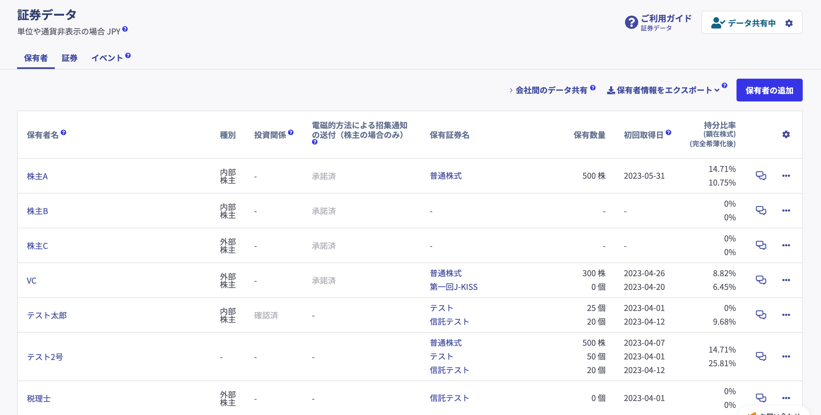 事前承諾機能で用いる株主のデータは、株主総会smartroundや株主名簿作成など様々な機能で共通してお使いいただけます。株主管理に関連する事務作業をsmartroundで一元的に対応できます。