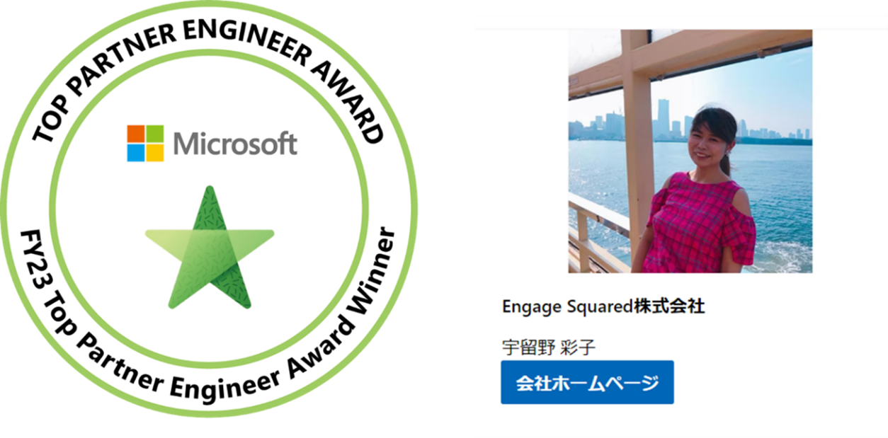 従業員エンゲージメント向上に向け、Microsoft 365(※1)を活用した従業員エクスペリエンス改善及びデジタルトランスフォーメーション促進のコンサルティング支援を大手企業様に提供しているEngage Squared(本社所在地:オーストラリア・ビクトリア州メルボルン市、CEO:Stephen Monk)の、日本支社であるEngage Squared株式会社(所在地:東京都渋谷区、代表取締役:Michael Cashen)の社員・宇留野彩子が、「Microsoft Top Partner Engineer Award <Modern Work部門>」(日本時間2023年7月20日発表)を受賞いたしました。