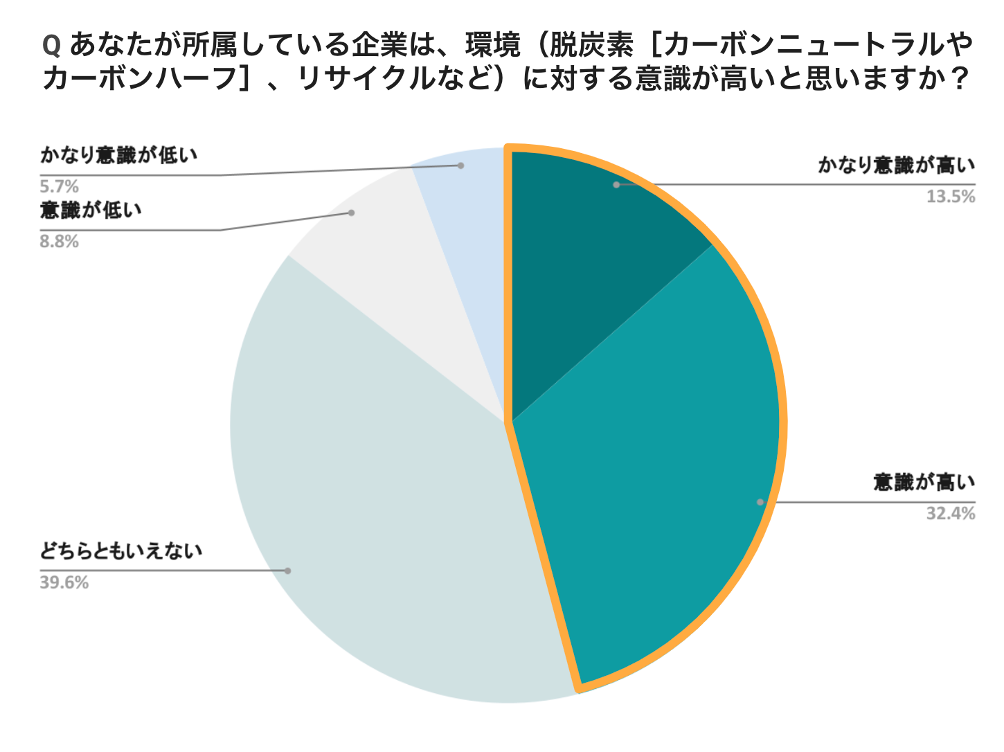 Q あなたが所属している企業は、環境(脱炭素[カーボンニュートラルやカーボンハーフ]、リサイクルなど)に対する意識が高いと思いますか?