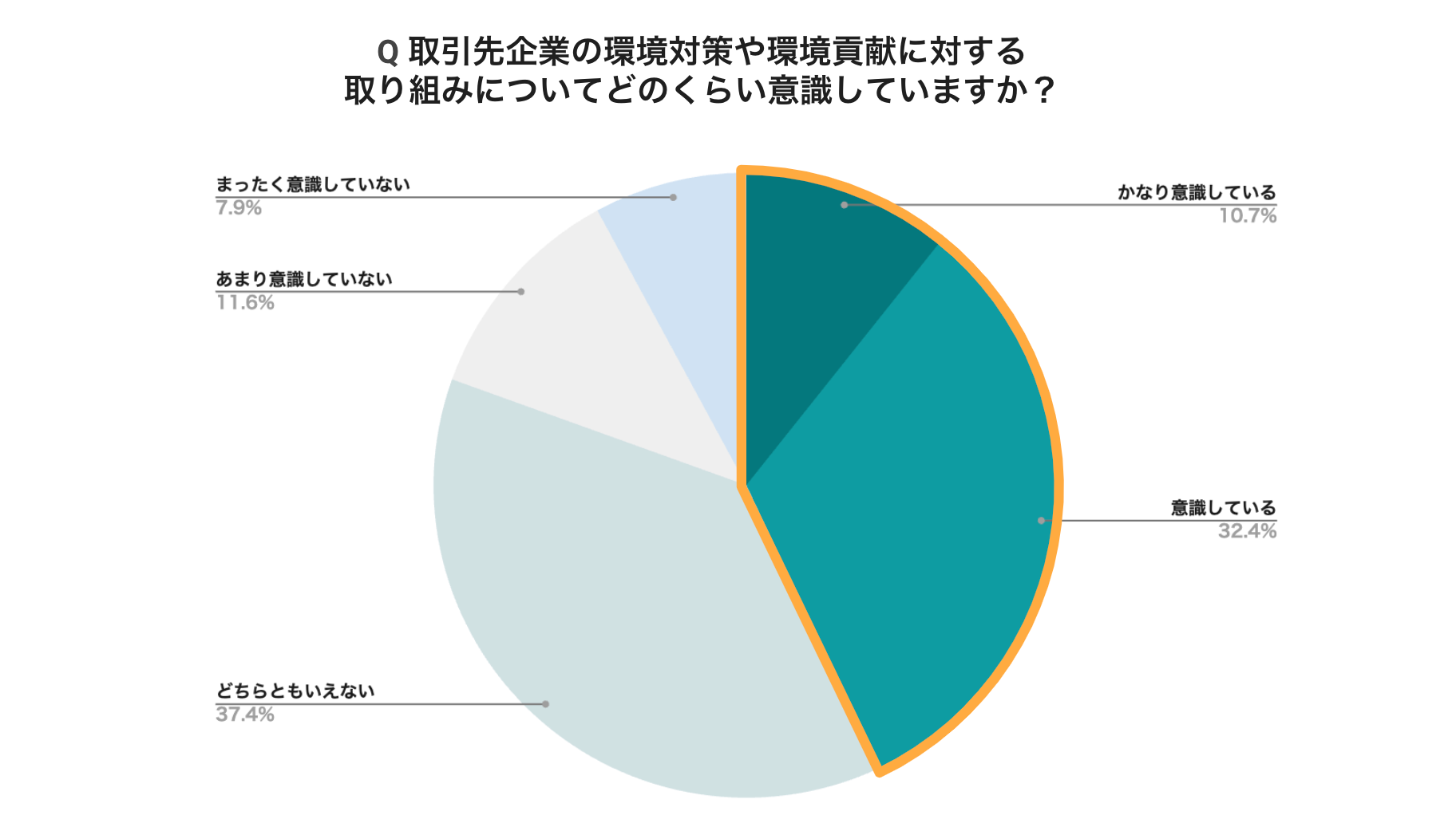 取引先業の環境対策や環境貢献について、約4割(43.1%)が「意識している」と回答しています。