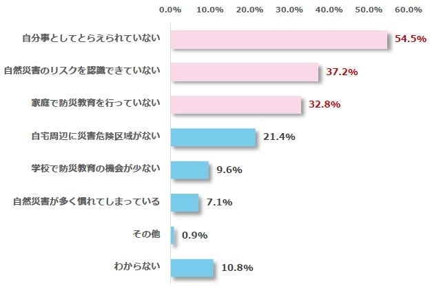 子どもの防災意識が低い理由、最多回答は「自分事としてとらえられていない」