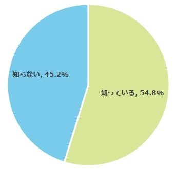 災害用伝言ダイヤルを知っているかと質問したところ、54.8%が「知っている」、45.2%が「知らない」と回答しました。