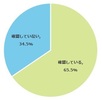 自宅周辺をハザードマップで確認した経験があるか質問したところ、65.5%が「確認している」、34.5%が「確認していない」と回答しました。