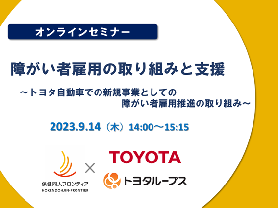 今回のセミナーは、トヨタ自動車様・トヨタループス様をゲストにお招きし、障がい者雇用の取り組みについてご紹介いたします。