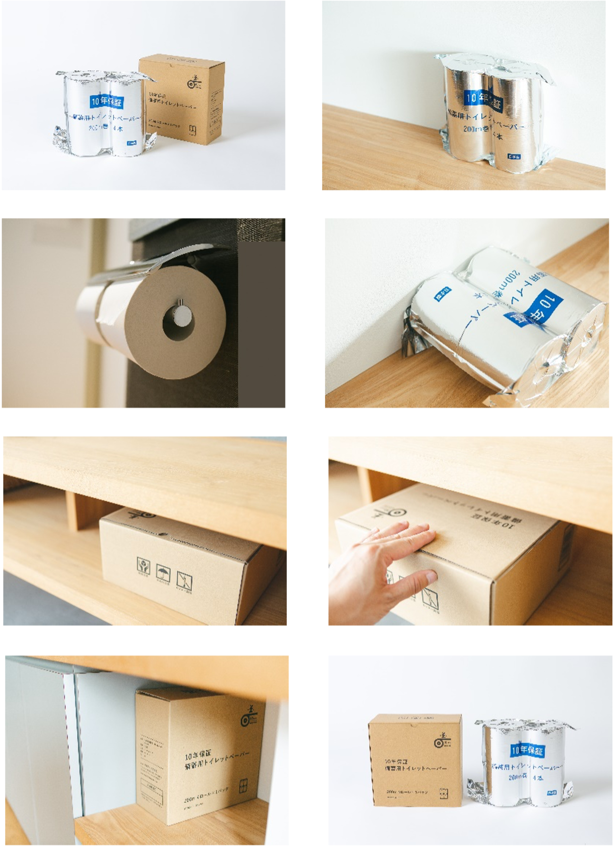 ご自宅での備蓄用はもちろん、親戚や友人への贈り物にも最適な新しい防災製品です。この新製品を通じ、品不足でのパニックとなりやすいトイレットペーパーの備蓄をより促進し、災害時に深刻なトイレットペーパー不足の解消を目指します。