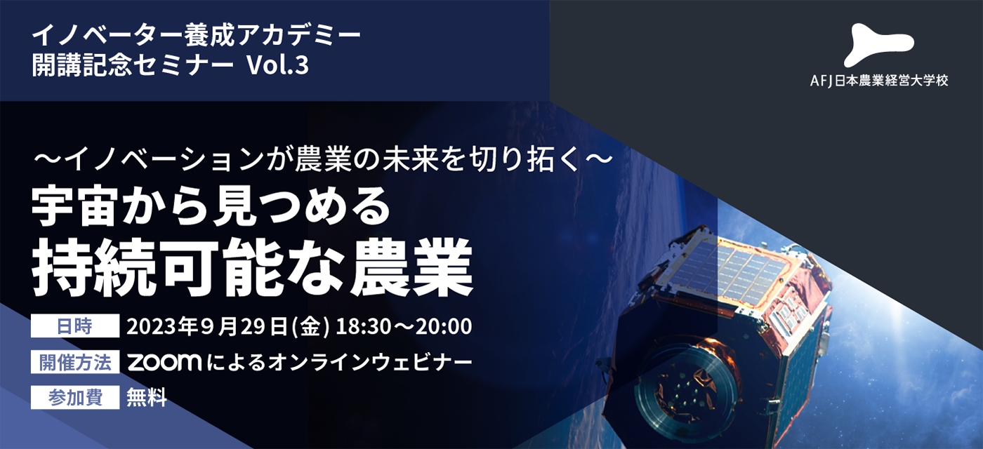 今回は、起業家でありながら、多くの企業の新規事業創出や成長戦略を支援してきた経験を持ち、イノベーター養成アカデミーのイノベーション科目もご担当いただく三村昌裕氏(三村戦略パートナーズ株式会社 代表取締役)から、農業課題解決事業として経産省のJ-startupにも選定された超小型衛星やドローンを活用した病害発見技術など、これまで関わってきたアグリビジネス領域でのイノベーション事例について話していただきます。