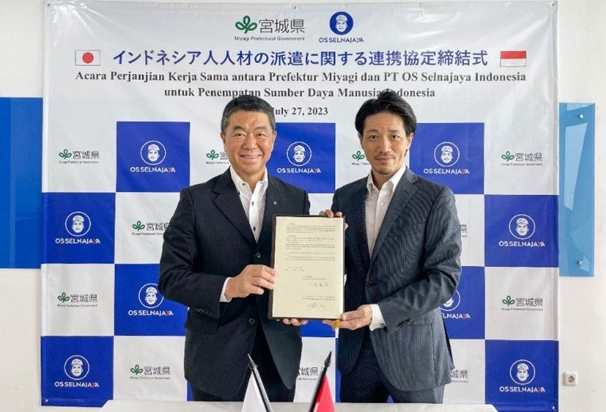 本連携協定締結の翌日(2023年7月28日)には、宮城県とインドネシア政府労働省の間で、インドネシア人技能実習生・特定技能外国人・技術者の日本への派遣・受け入れ促進について、協力覚書の締結が行われました。