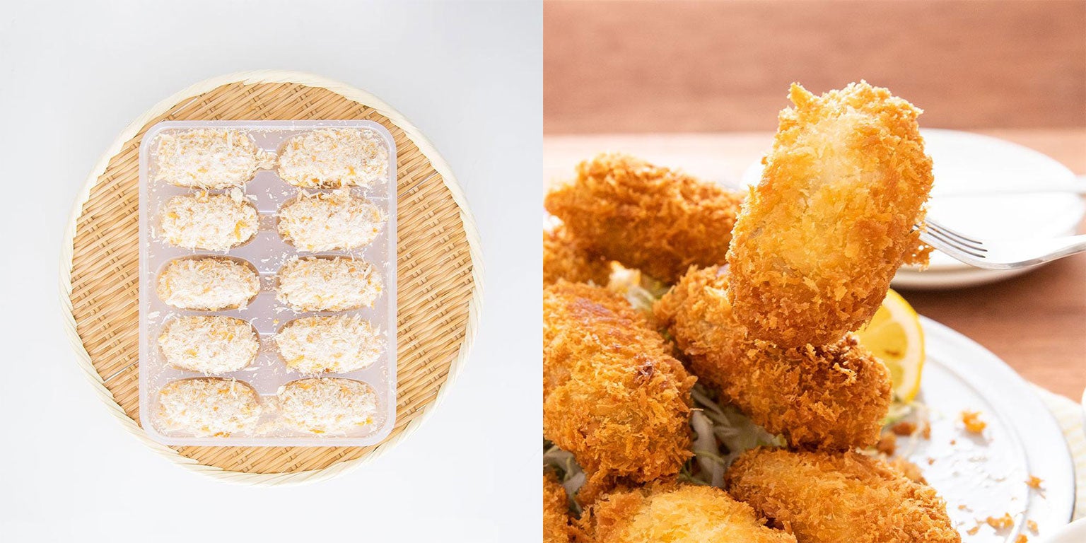 三陸の大粒の生牡蠣をフライ用に衣をつけています。旨味を逃さず鮮度そのものを凍結しているため身の縮みが少なくふっくらジューシーな味わいに仕上げられます。