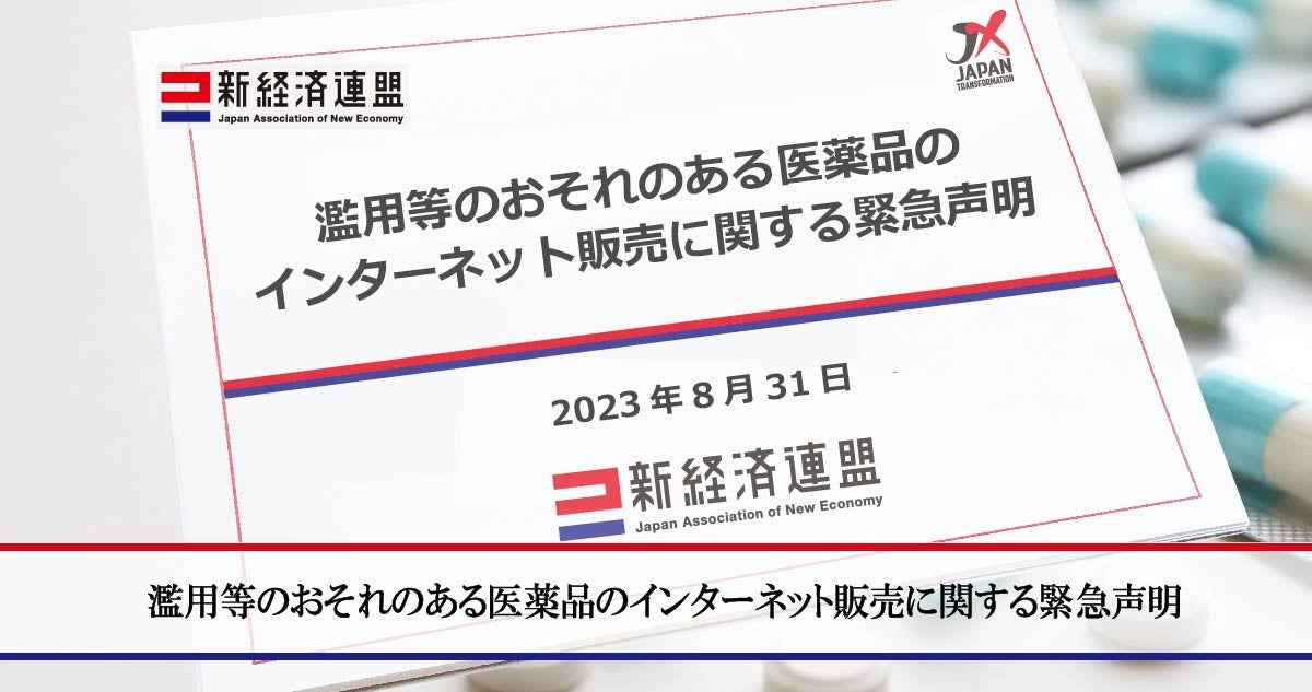一般社団法人新経済連盟(所在地:東京都港区、代表理事:三木谷浩史)は、2023年8月31日、厚生労働省「医薬品の販売制度に関する検討会」(事務局:医薬・生活衛生局総務課)において議論されている、濫用等のおそれのある医薬品の販売方法の事項について、アジアインターネット日本連盟と共同で緊急声明を公表いたします。なお、今後の議論の展開等を踏まえ、引き続き意見を提出する可能性があることを申し添えます。