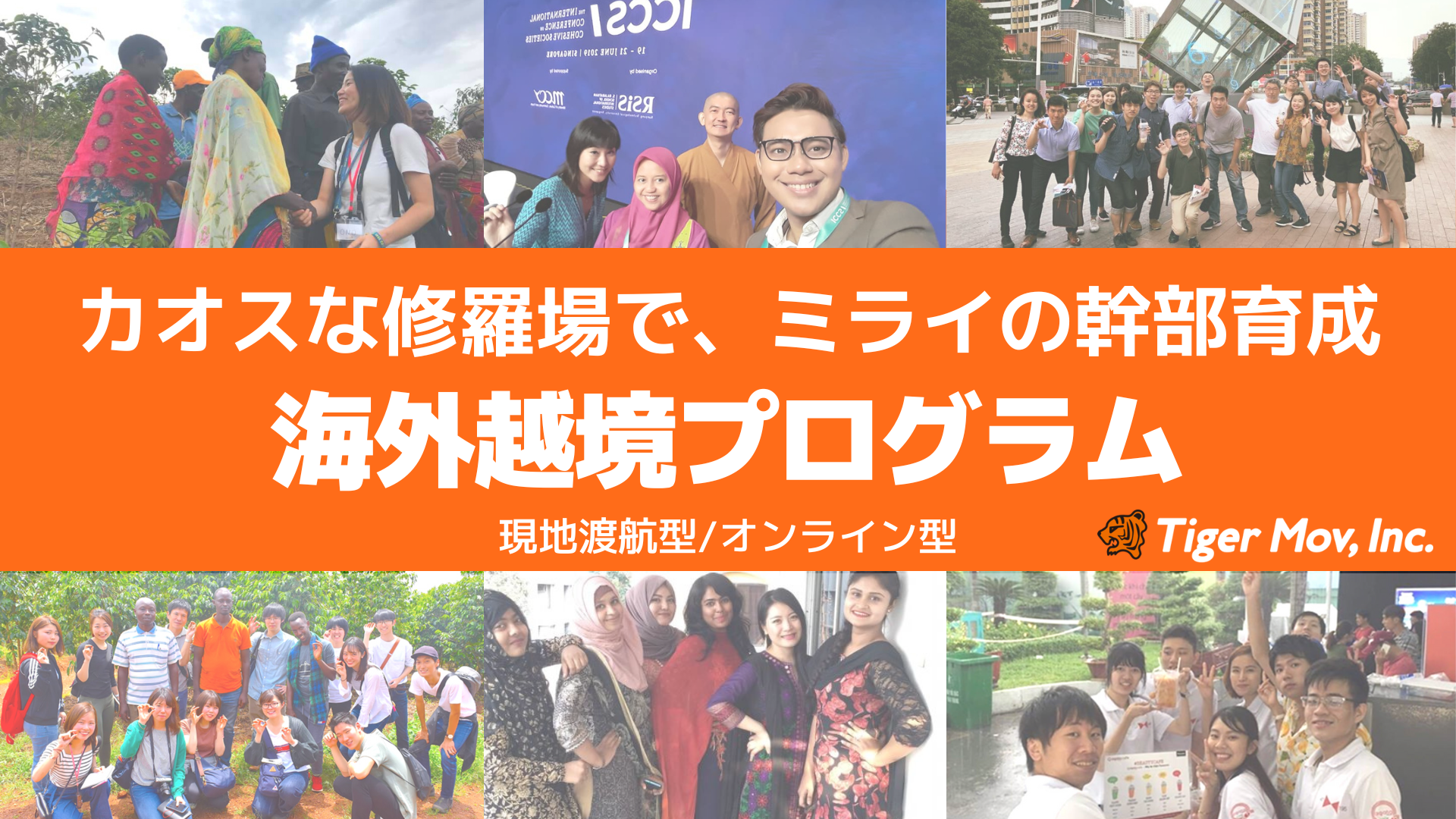 タイガーモブ株式会社について”次世代リーダーの創出”をミッションに、オンライン・オフライン合わせて世界45ヶ国600件以上の実践機会を教育機関へ提供、海外インターンシップ、海外プログラムを企画・紹介する教育系スタートアップ。Learning by doing(実践による学び)を大事にしながら、世界で注目を集める地域での短期間での視察研修や他国の他社での長期間の修羅場経験・他流試合の提供も含め、これまで約7,000名以上の学生・社会人を世界に送り出し、当たり前が変わる体験を提供しています。自分は何がしたいのか、なぜこの価値観なのかと内省を繰り返すことで個人に積み上がる経験としてご活用頂いています。