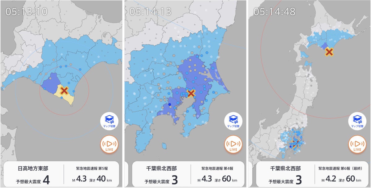 (2023年3月11日午前5時台に発生した地震での表示例)