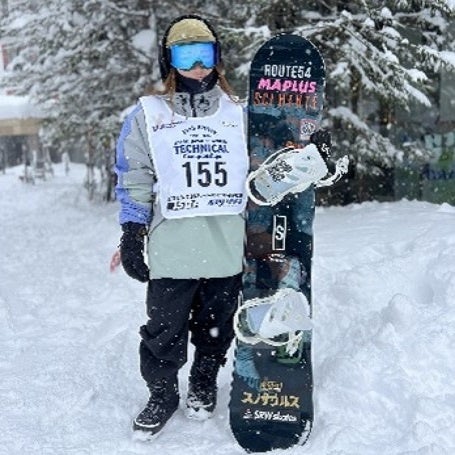 現在の仕事を続けながら、6年目となるスノーボードで常連入賞やスポンサー獲得、全国大会への出場など「スノーボード界を盛り上げる存在になる」ことを夢に財団に応募。第1期支援者となった昨年は、夏季でも休日と空き時間を練習に費やし、全日本大会予選となる公式大会へも初挑戦しました。支援2期目となった今年は、目標としていた全日本選手権への参加をつかみ取りました。