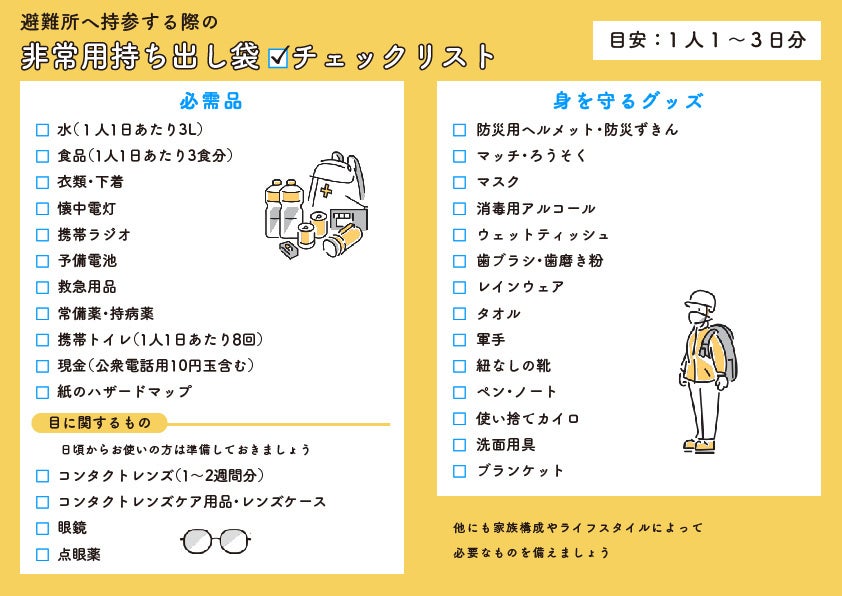 ■「非常用持ち出し袋」には1~2週間分のコンタクトレンズを用意しましょう
