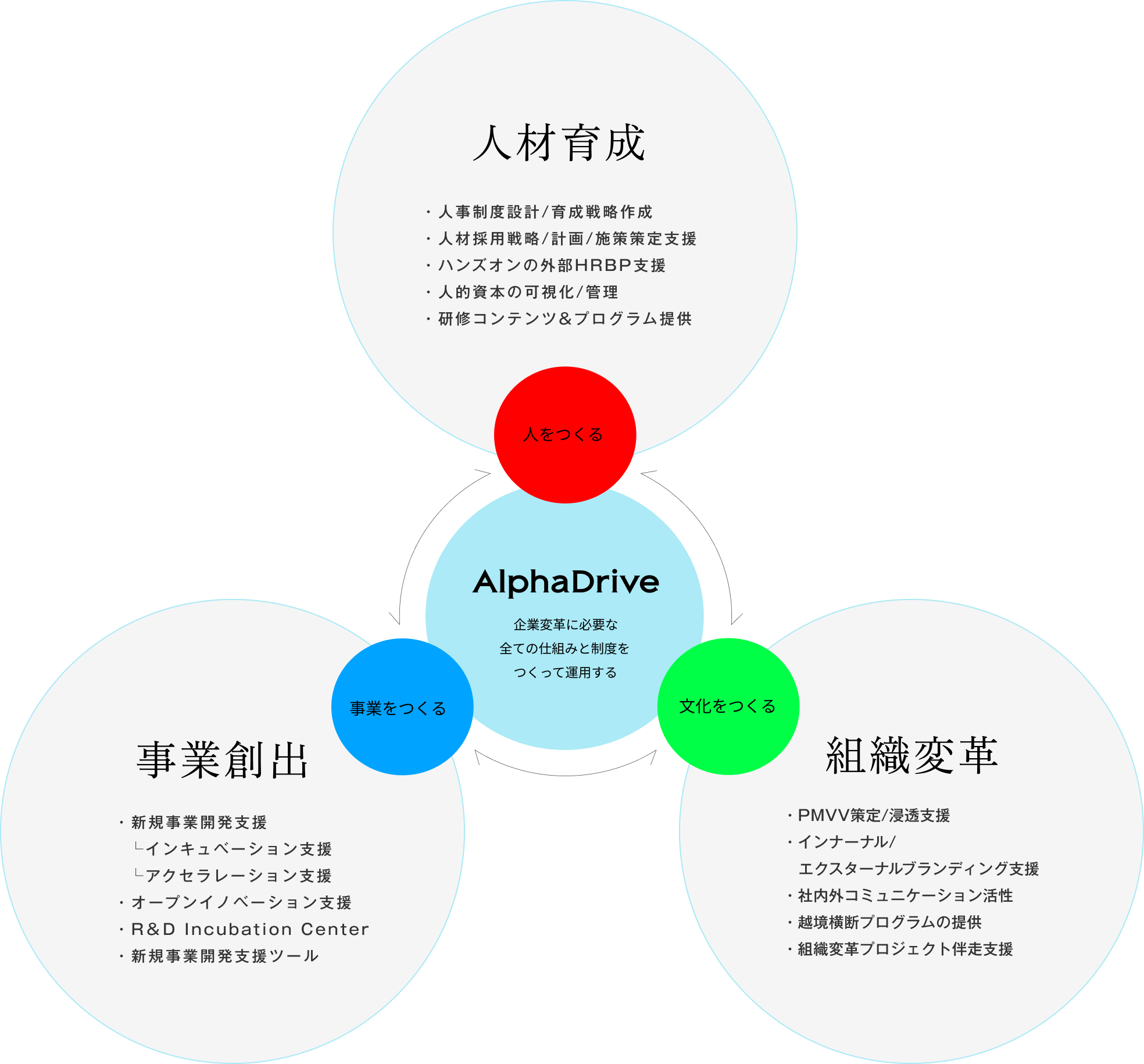 各種支援の詳細は、AlphaDriveのサービスサイトで紹介しています。