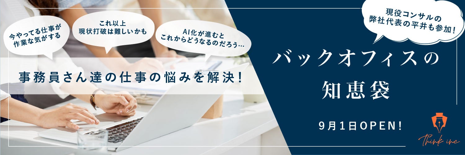 シンクインク株式会社は事務員さん達を救うべく〈バックオフィスの知恵袋〉を発足いたしましたことをお知らせ致します。