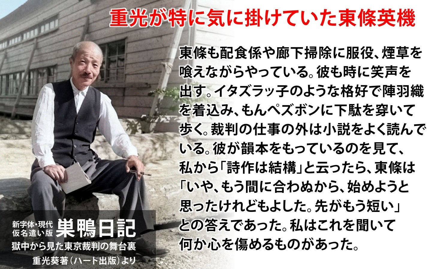 重光を再評価するために、一人でも多くの日本人に巣鴨日記を読んで欲しい。東京裁判が膨大な時間を費やして個別事実の検証を行うふりをしながら、いかに一方的な復讐劇であったか。囚人たちがいかに過酷で屈辱的な環境下に置かれたか。その中にあってなお、くじけることなく、媚びることなく、日本の将来を案じ続け、敵国である欧米からも尊敬と信頼を集め、真摯に弁護された重光の生き様を見れば、その偉大さが理解できるだろう。そして、今こそ重光の精神を復活させることが日本民族の存続に不可欠であることを確信するだろう。