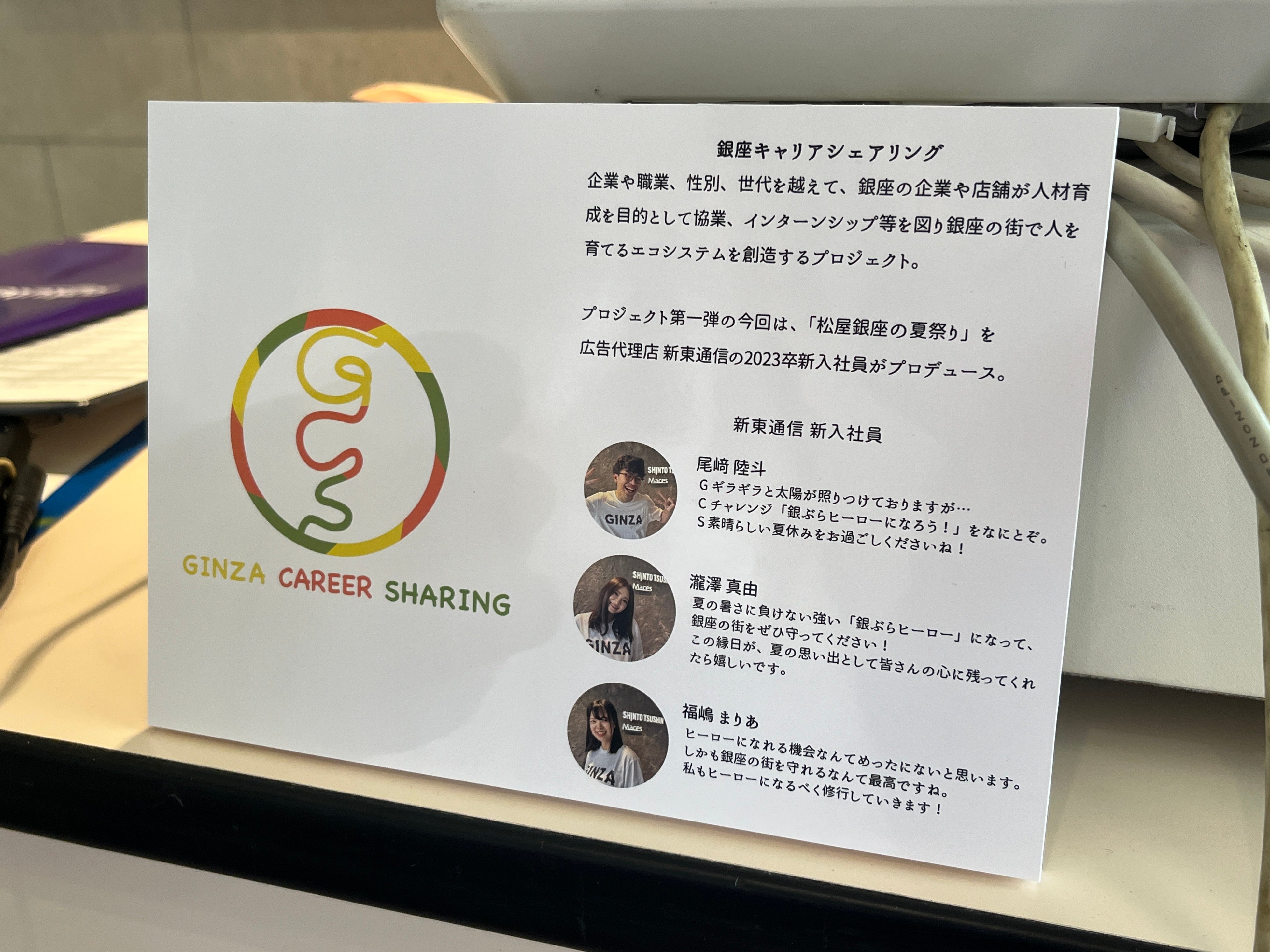 今回、松屋銀座と協業し「松屋銀座の夏祭り」を新東通信の新入社員が、新入社員研修の一環としてイベント企画のプロデュースとツールデザインを担当しました。