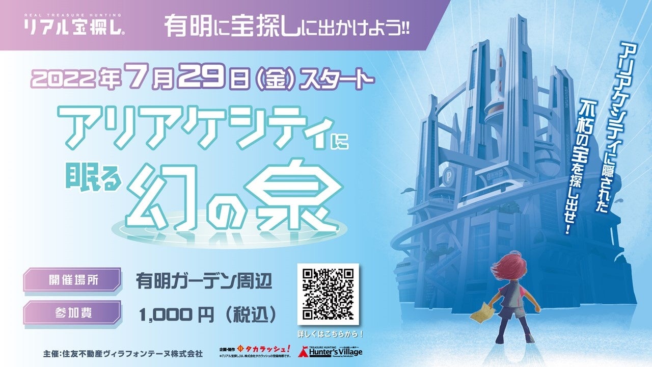 | 期間:2022年7月29日(金)~2023年3月31日(金)予定 場所:モール・ホテルほか有明ガーデン周辺施設 ▼リアル宝探しイベント~アリアケシティに眠る幻の泉~特設サイト https://www.hvf.jp/takara/ |