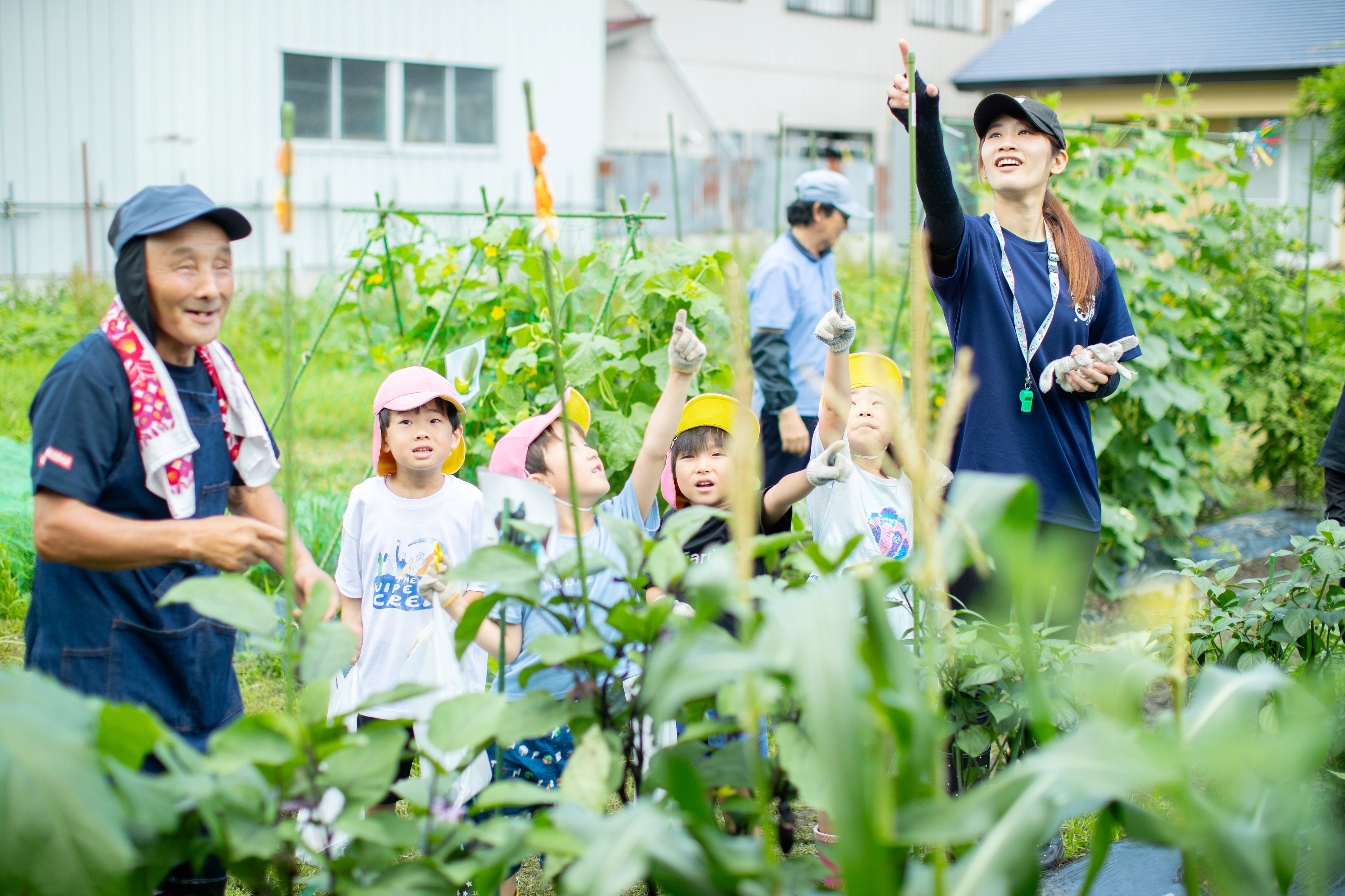 まち全体が子どもの遊び場、居場所だと思っています。地域の方達に愛されている子どもたち、畑の先生は高齢者の方たちですが開墾、そして畑づくりへと力を注いでくれます。子どもからの感謝の花束に涙してくださる皆さんです。また、高校や障がい者生活支援センターの青年たちとはサツマイモ植え・サツマイモ掘り・焼き芋パーテイー・地域の花壇づくり・避難訓練などを支援いただき、いつも子どものそばに誰かがいる、そんな空気を感じます。昔、子どもだった大人たちが見守ってくれる安心の地域です。