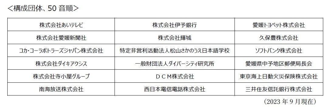 愛媛県松⼭市で事業展開する企業等の有志12 団体による任意団体として、2022 年6 ⽉に発⾜。今年度は新