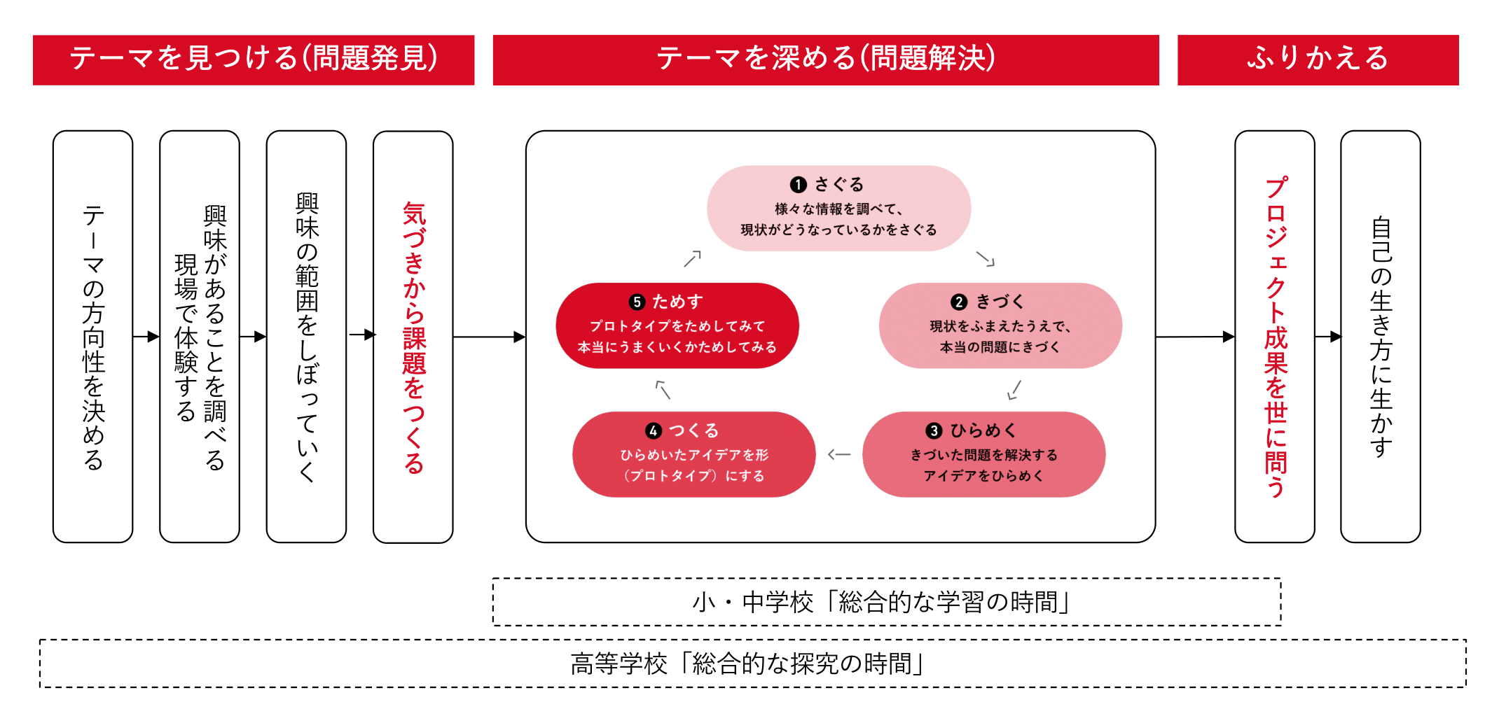 「探究学習における課題解決の型」としてのデザイン思考を確実に身につけることで、多様な分野の学習に活用することができます。