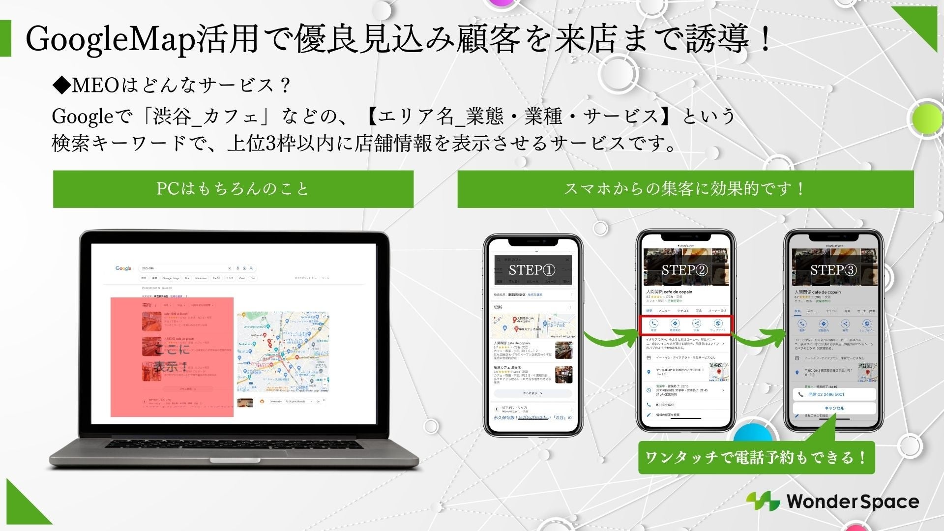 実際に弊社クライアント様では、Googleマップから無料で月間30件のお問い合わせを獲得した事例がございます。