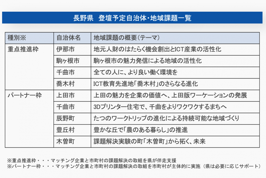 長野県の市町村と県内外企業のマッチングやプロジェクト組成等を推進する「おためし立地 チャレンジナガノ!」(主催:長野県、事務局:Publink)はこれまでの2年間で多くの成果を創出(官民のマッチングのペア200件以上、8社の新規立地)し、今年で3年目を迎えました。