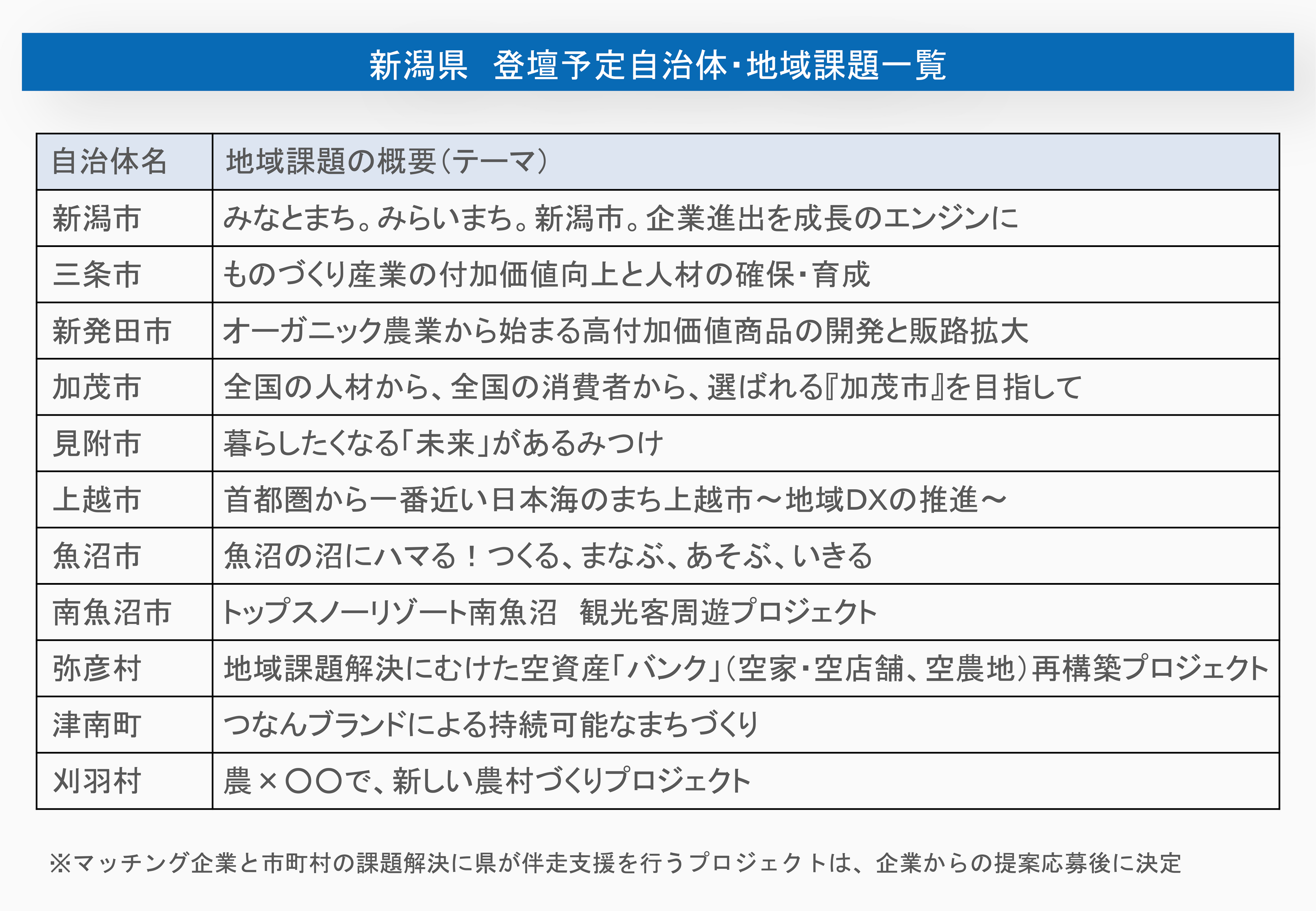さらに、今年は隣県である新潟県において「地域と企業をつなぎ共創する チャレンジ新潟」(主催:新潟県、事務局:Publink)がスタートしました。