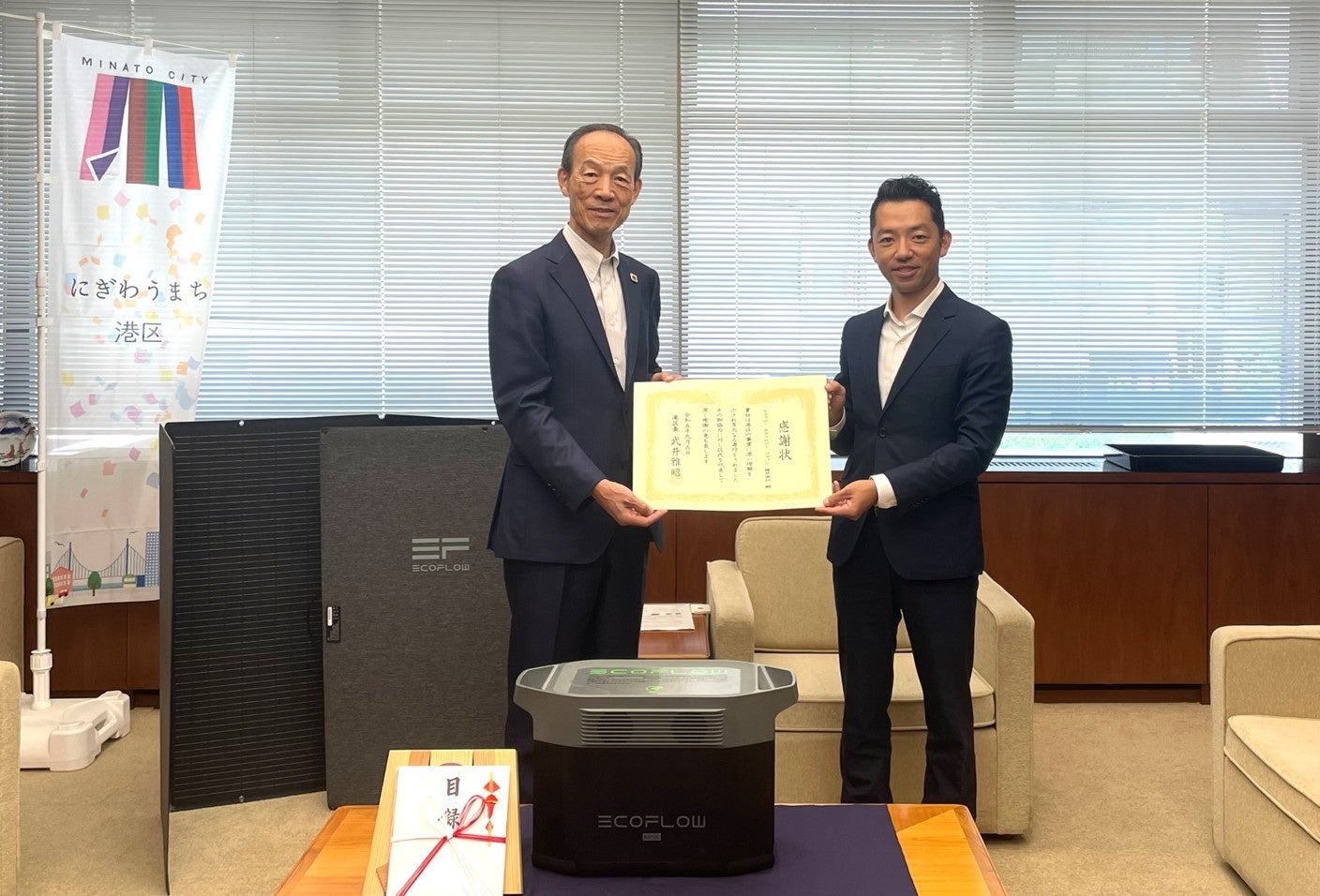 (左:港区区長 武井雅昭様、右:EcoFlow シニアPRマネージャー寺井翔太)